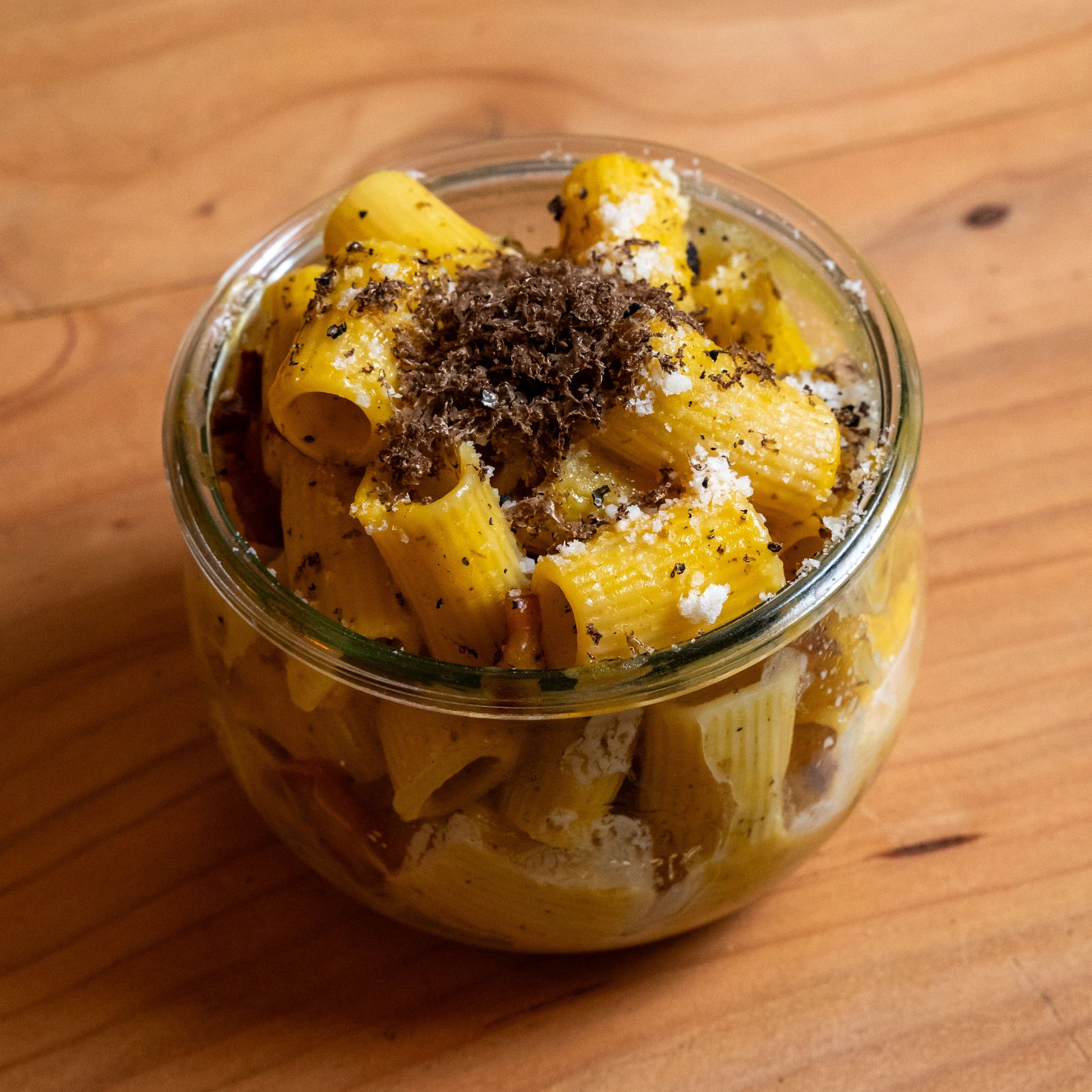 Glutenfreies Carbonara-Set für 2 Personen ! Frische , handwerkliche Produkte, fertig in 10 Minuten ! Diese Box wird von Eggs , dem Restaurant von Küchenchefin Barbara Agosti , zubereitet.