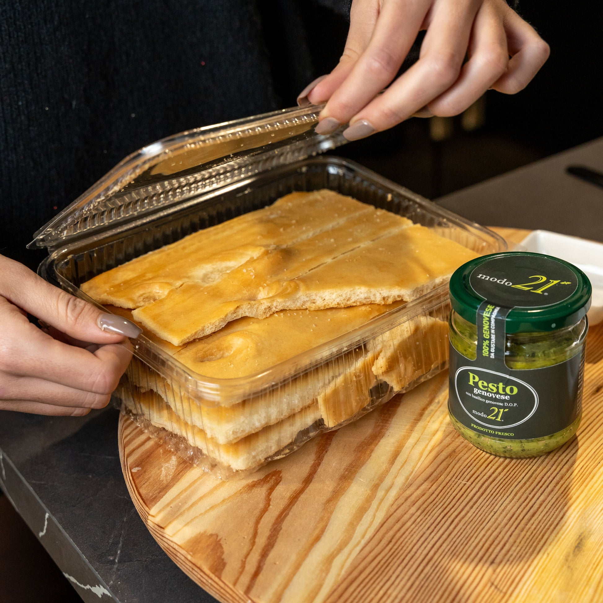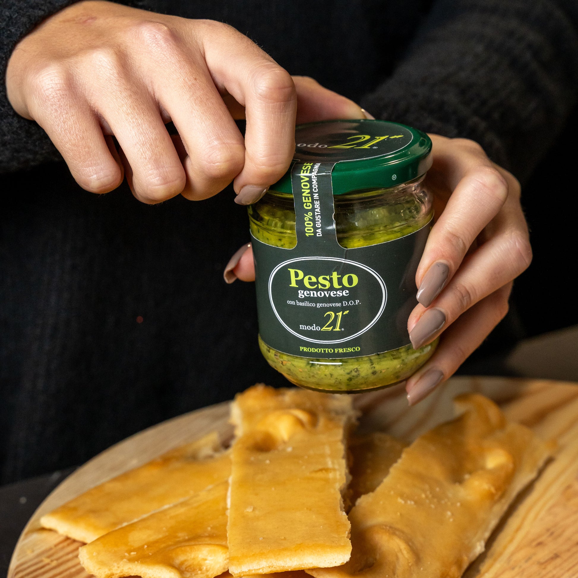 160 g Pesto mit Genueser DOP-Basilikumim Restaurant zubereitet (aufgeteilt in 2 Gläser).
