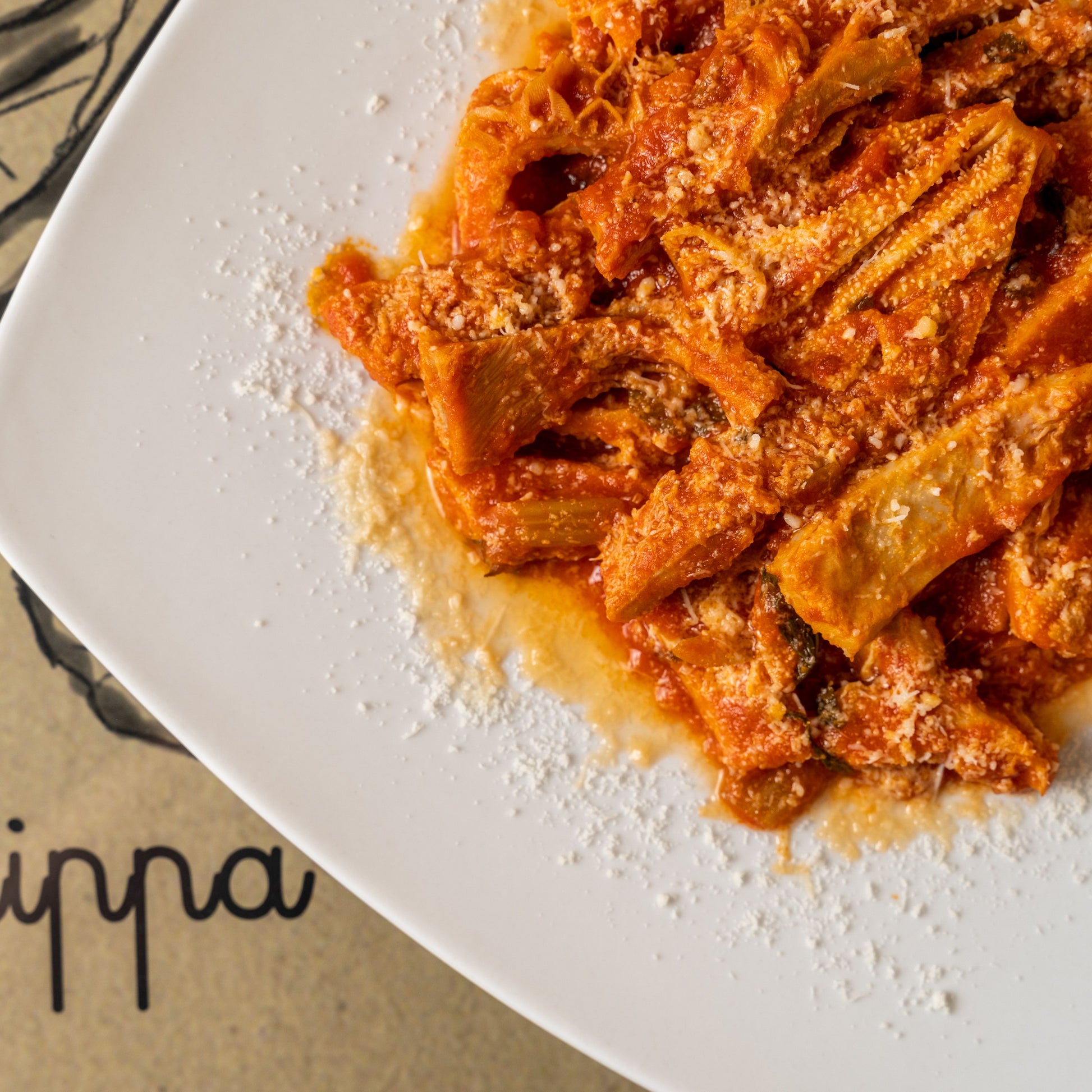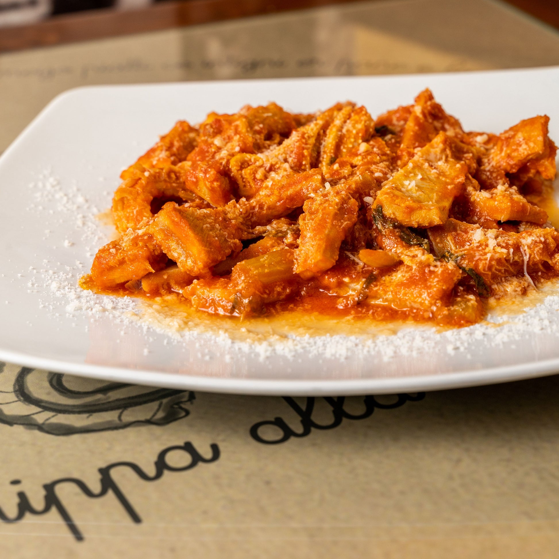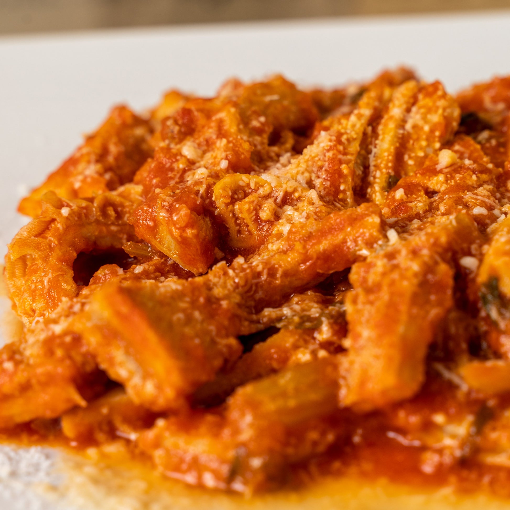 1 Portion römischer Kutteln(Kalbskutteln, Tomate, Minze, Hackfleisch, Salz, Chili, Pecorino). Glutenfreies Gericht.