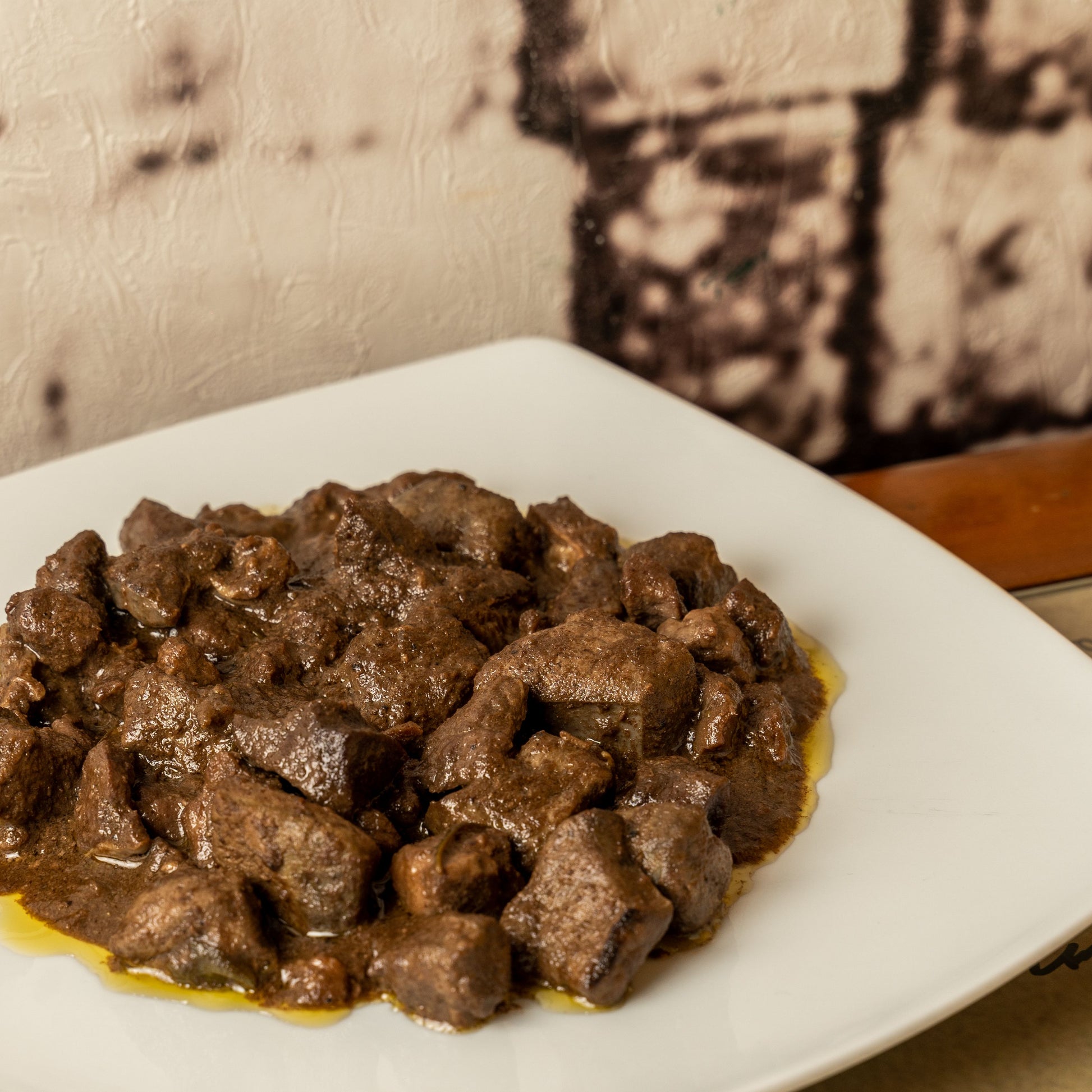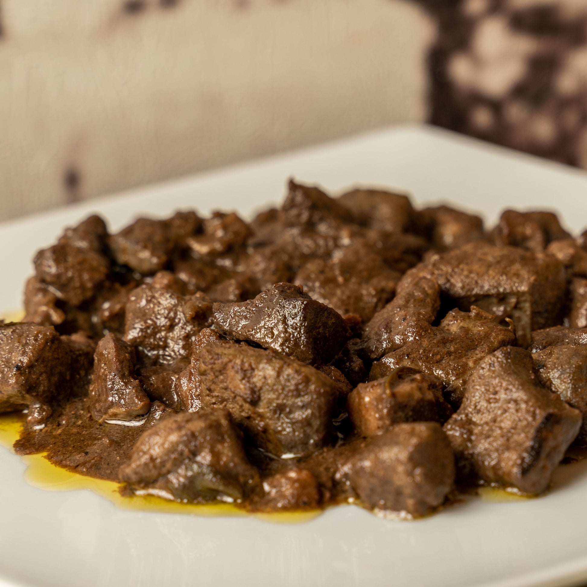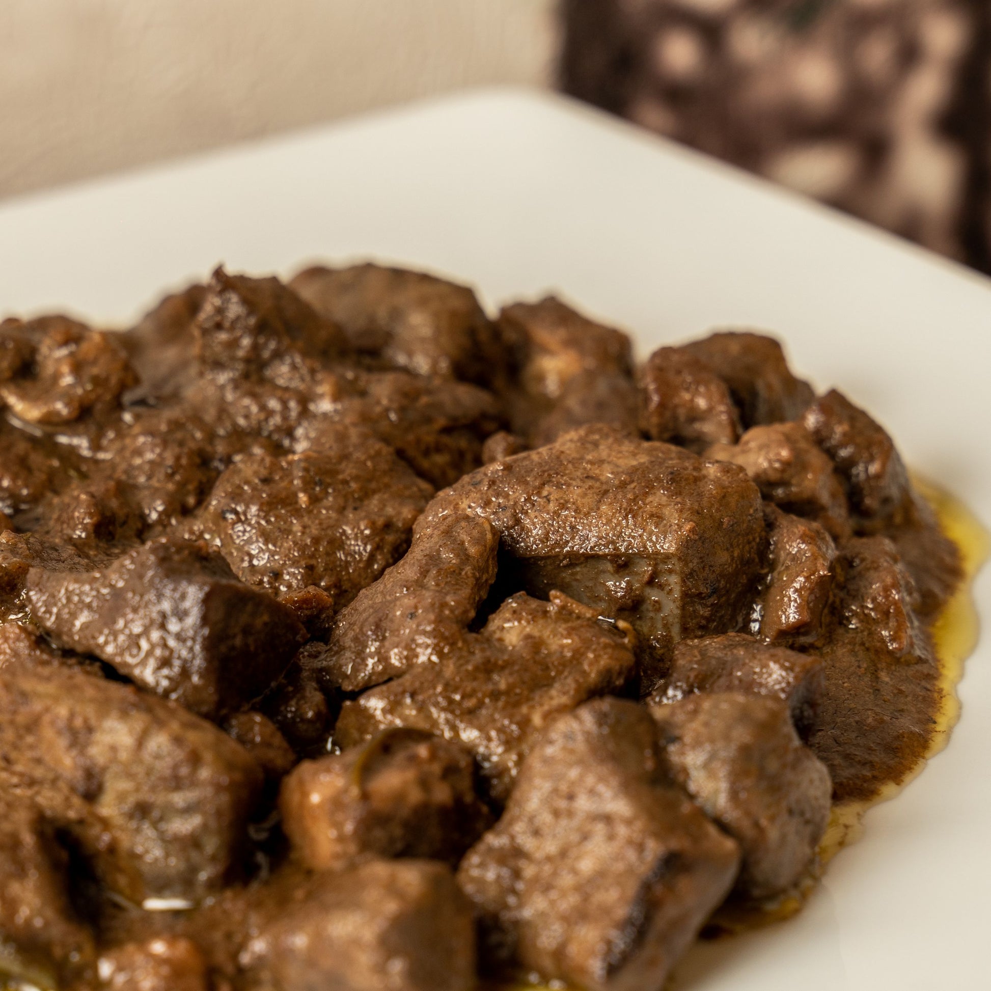 1 Portion Lamminnereien(Lamminnereien, natives Olivenöl extra, Zwiebeln, Weißwein, Salz, Chilipfeffer). Glutenfreies Gericht.