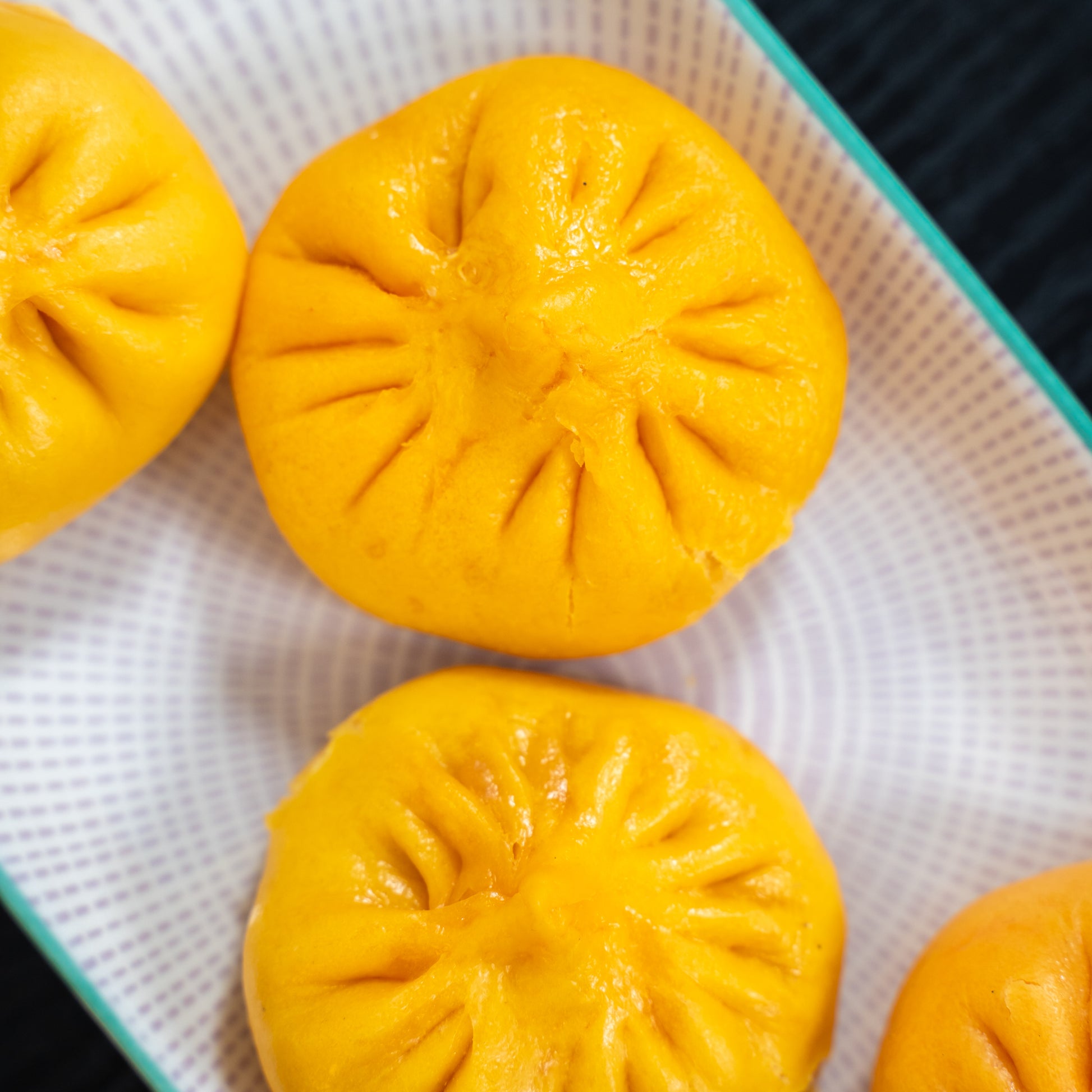 • Gedämpfte Mini-Baos (4 Stück): 72 Stunden gesäuerter Teig, Weizenmehl, Schweinefleisch, Mangold, Frühlingszwiebeln, Ingwer, Sesam.