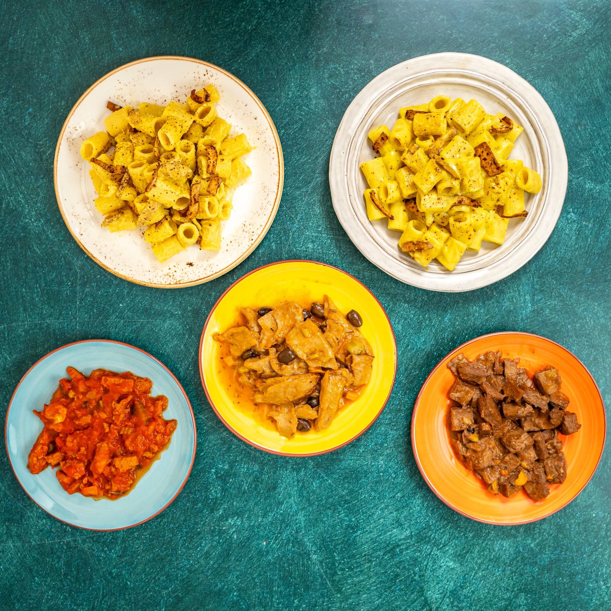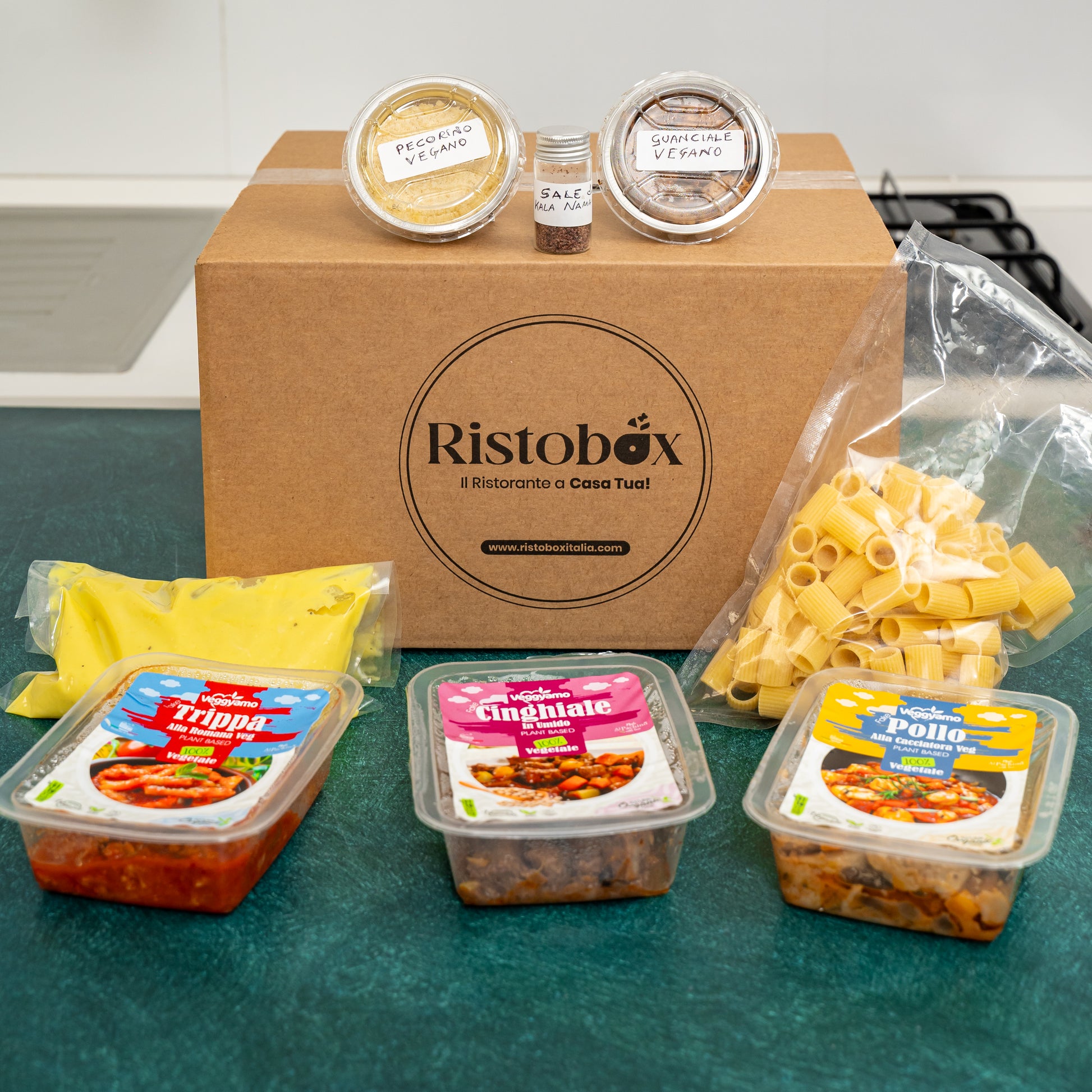Die Veggy Tasting Box ist perfekt für zwei Personen : Darin finden Sie ein 100 % vegetarisches Carbonara-Set und zwei Hauptgerichte zur Auswahl : Hühnchen Cacciatore , Kutteln nach römischer Art oder Wildschweineintopf, alles natürlich vegan ! Leckere, pflanzliche Gerichte, die sich ganz einfach zu Hause zubereiten lassen. Die ideale Box für ein köstliches und sorgenfreies Abendessen!
