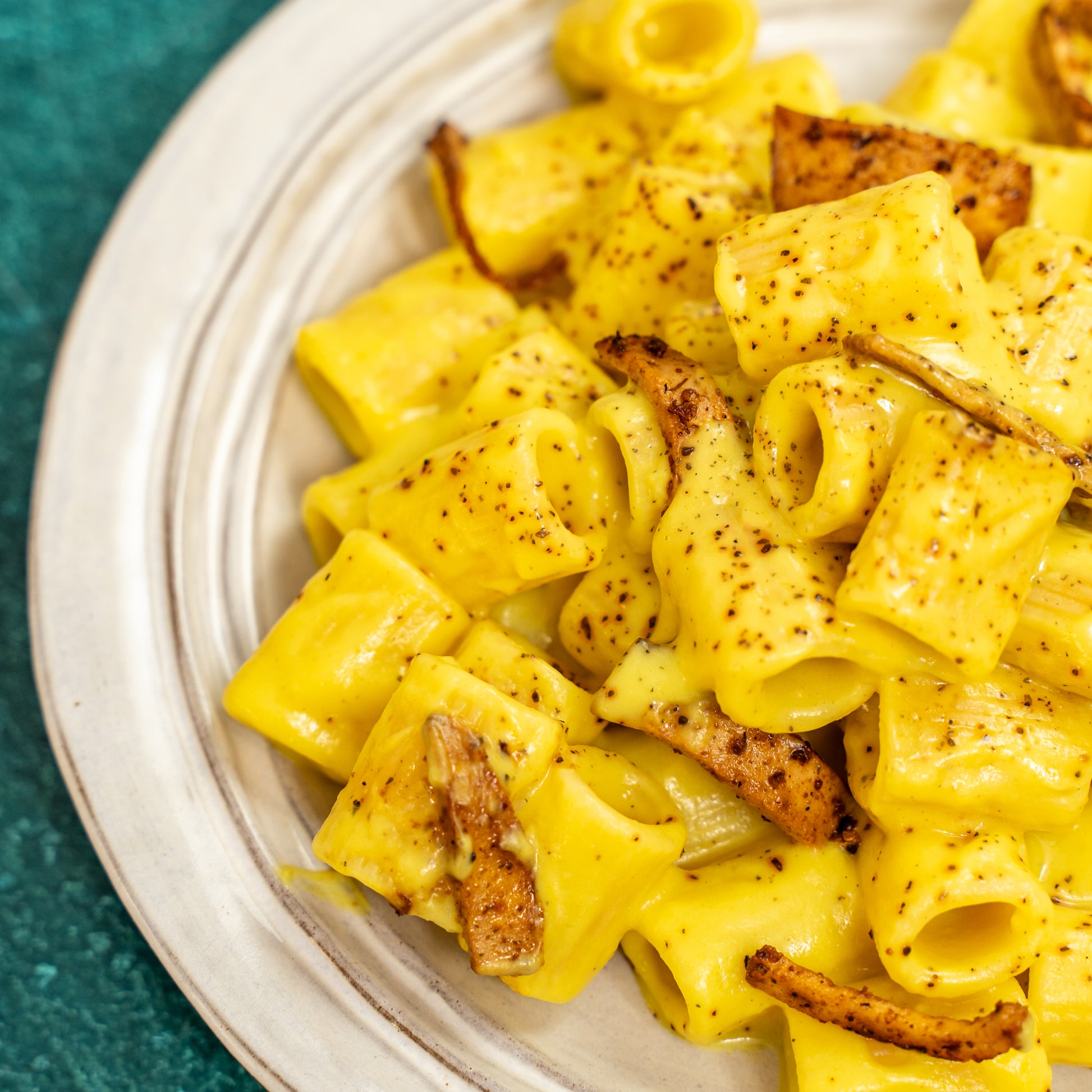 • Veganes Carbonara-Set für zwei PersonenGrießnudeln, Sojamilch, Nährhefe, Knoblauch, Pfeffer, Pflanzenmargarine, Tofu, Sojasauce, geräucherter Paprika, Kokosöl, Kichererbsenmehl, natürliche Aromen, Salz.