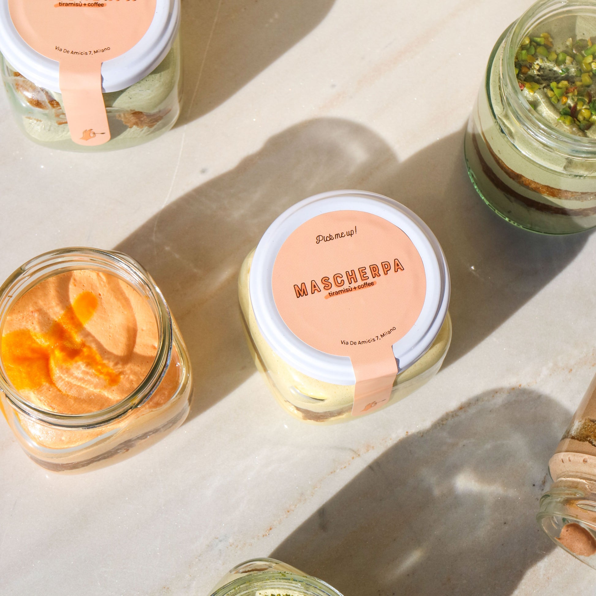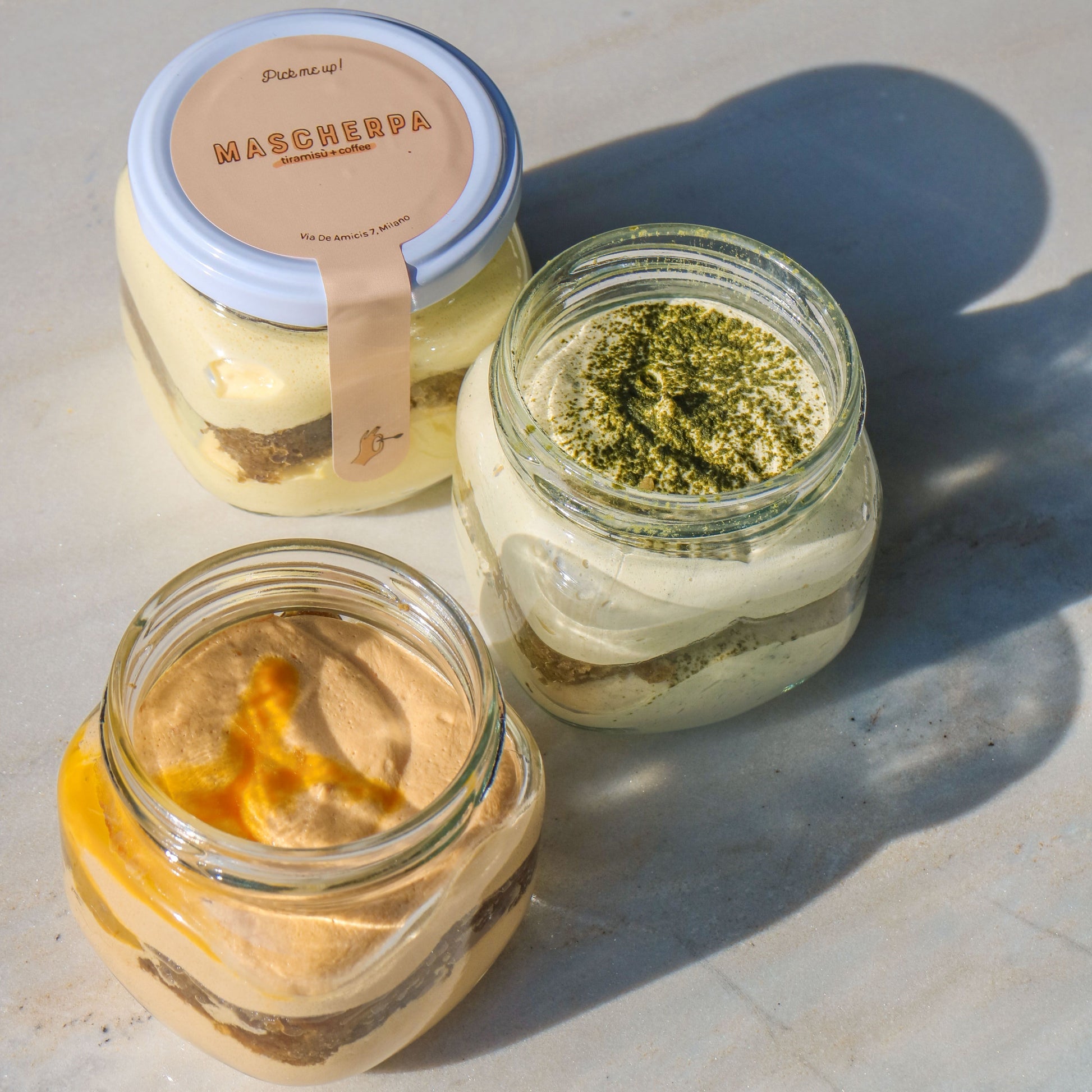 6 Desserts im Glas, wählen Sie aus 11 Geschmacksrichtungen , direkt von Mascherpa , Mailands Tiramisu-Tempel ! Tiramisu , Käsekuchen , Mousse – welches ist Ihr Favorit?