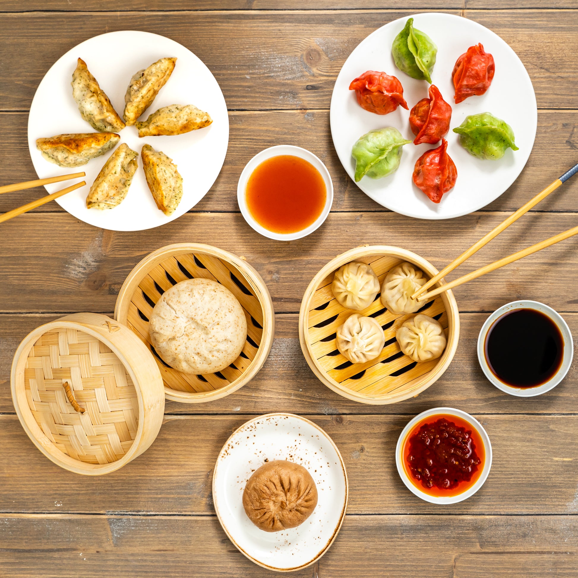 Eine Auswahl von 15 Teigtaschen ( chinesische Ravioli ) in den Geschmacksrichtungen Schwein , Kalb , Huhn, Pilze und Lamm . Servieren Sie dazu zwei Sorten Baozi , gedämpfte Brötchen gefüllt mit Fleisch und Gemüse, und ein süßes Schoko-Bao mit Milchschokolade und Haselnüssen. Handgemacht vom Restaurant Mr. Pling und direkt zu Ihnen nach Hause geliefert !
