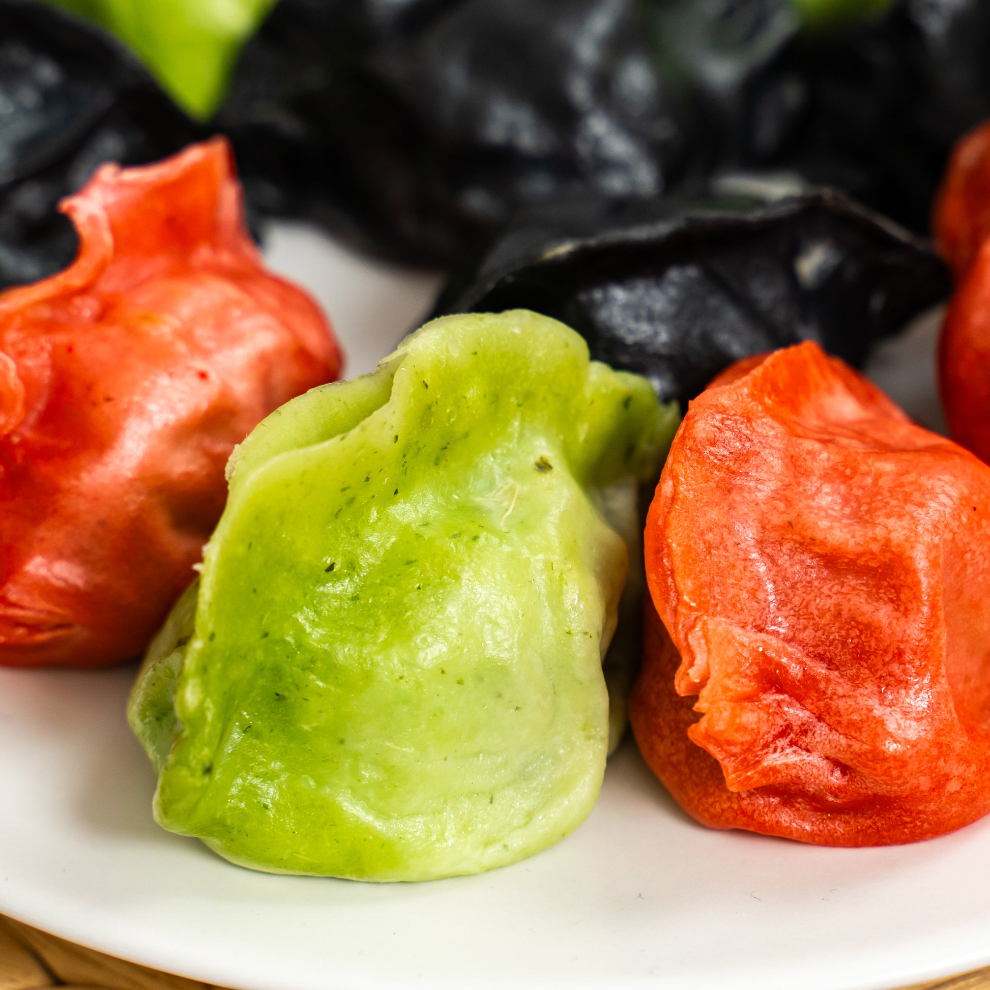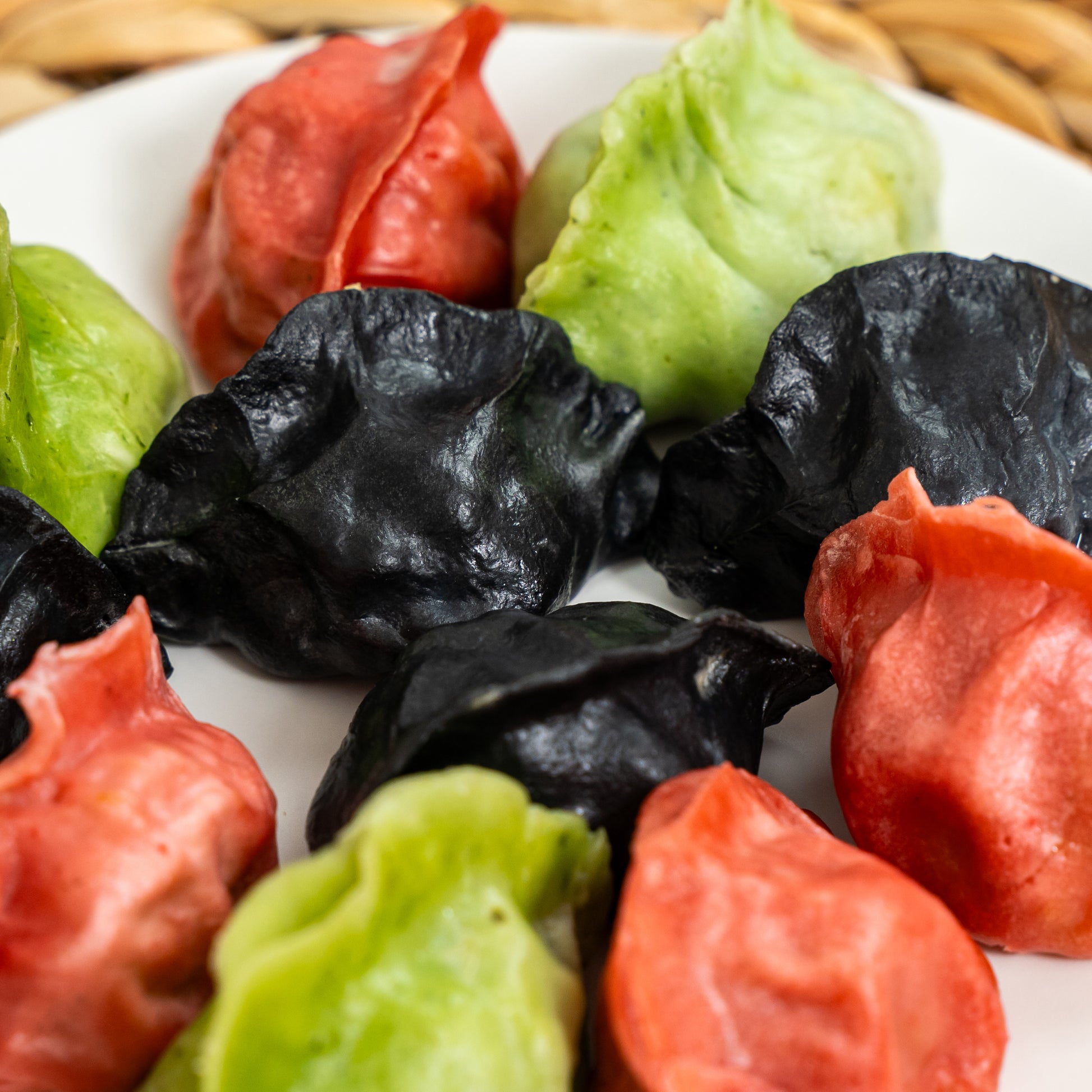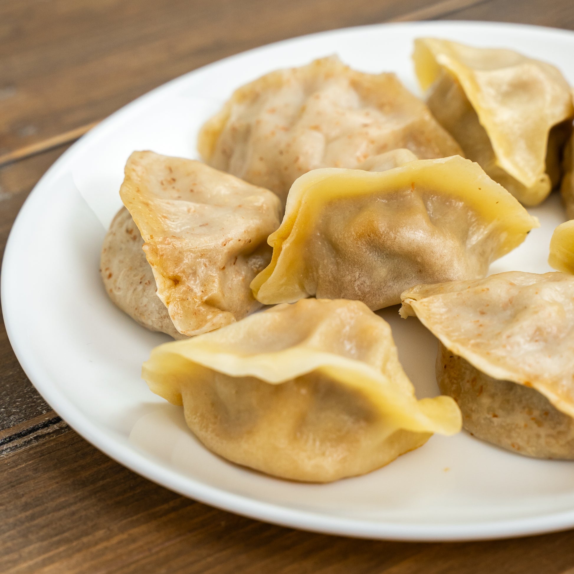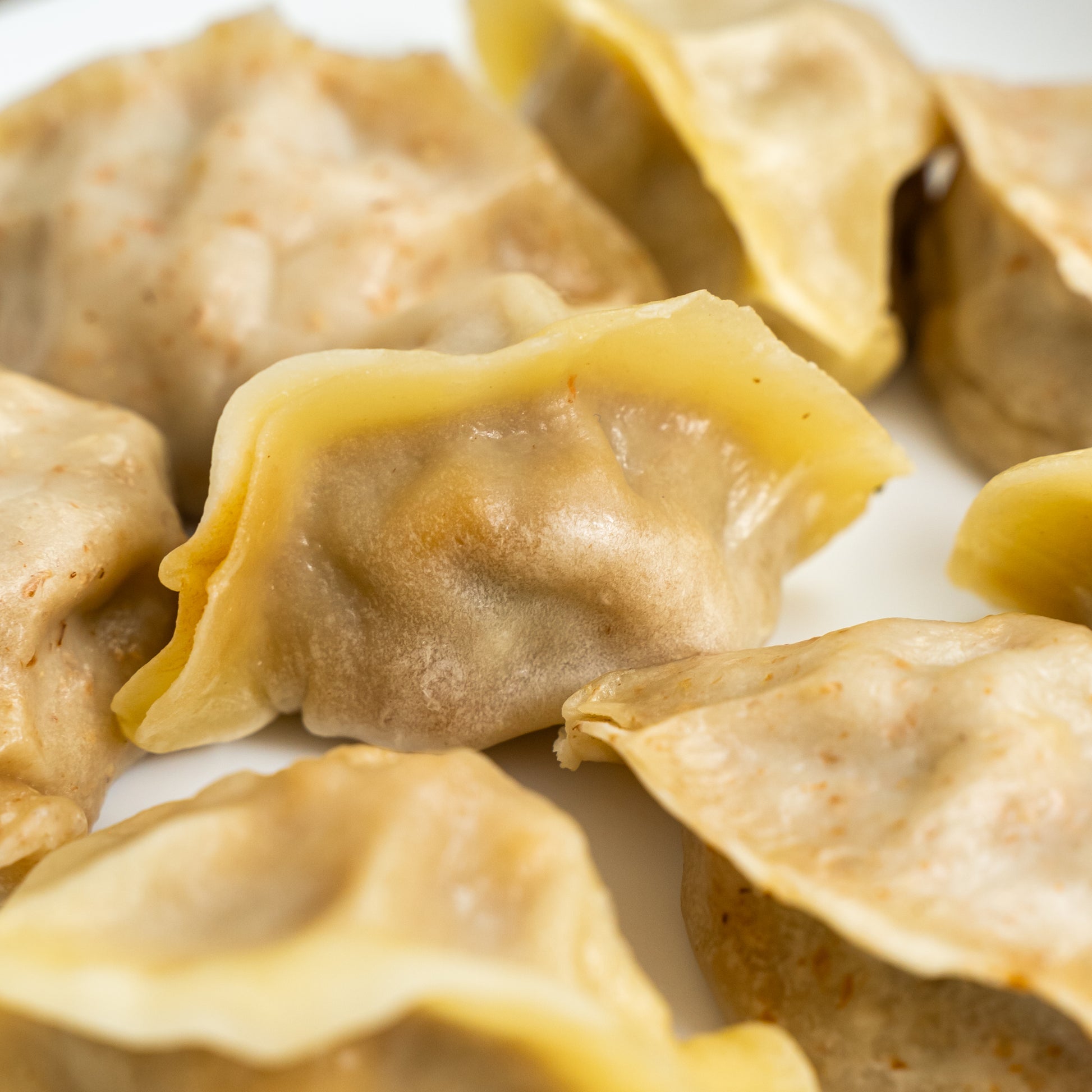 Lamm-Ravioli(4 Stück) (Dampf): Weizenmehl, Lamm, Karotte, Koriander, Zwiebel, Ingwer.