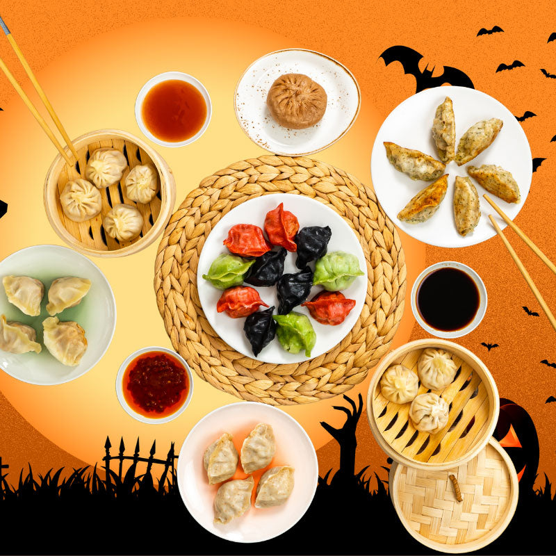 Feiern Sie Halloween mit einem schaurig-schönen Abendessen im perfekten chinesischen Stil! Die limitierte Halloween-Box mit chinesischen Ravioli , erhältlich für 2 oder 4 Personen, enthält alles, was Sie für ein einzigartiges Halloween- Dinner mit leckeren, einzigartigen und original chinesischen Ravioli brauchen!