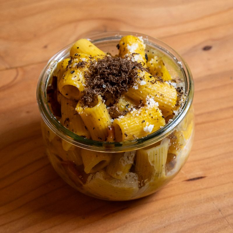 • Carbonara mit Trüffel: Carbonara mit Bio-Eiern, Amatriciana-Speck,