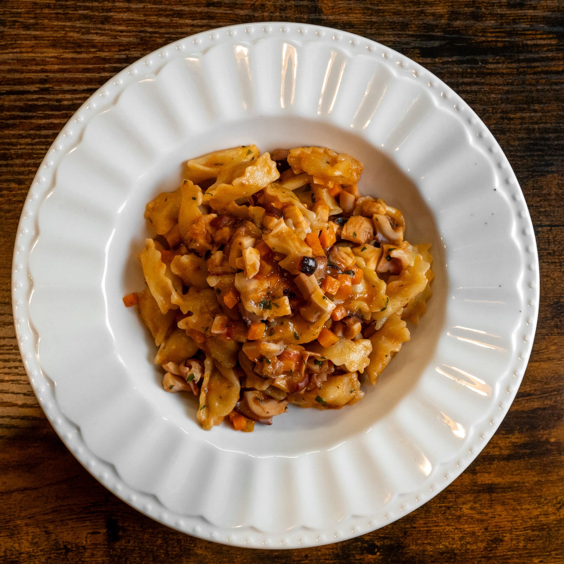 Wählen Sie Ihre bevorzugten frischen Pastaformen und kombinieren Sie sie mit Ihrer Lieblingssauce : Die Portionen sind für 4 Personen ! Handgefertigte Produkte im Restaurant Plin in Mailand .