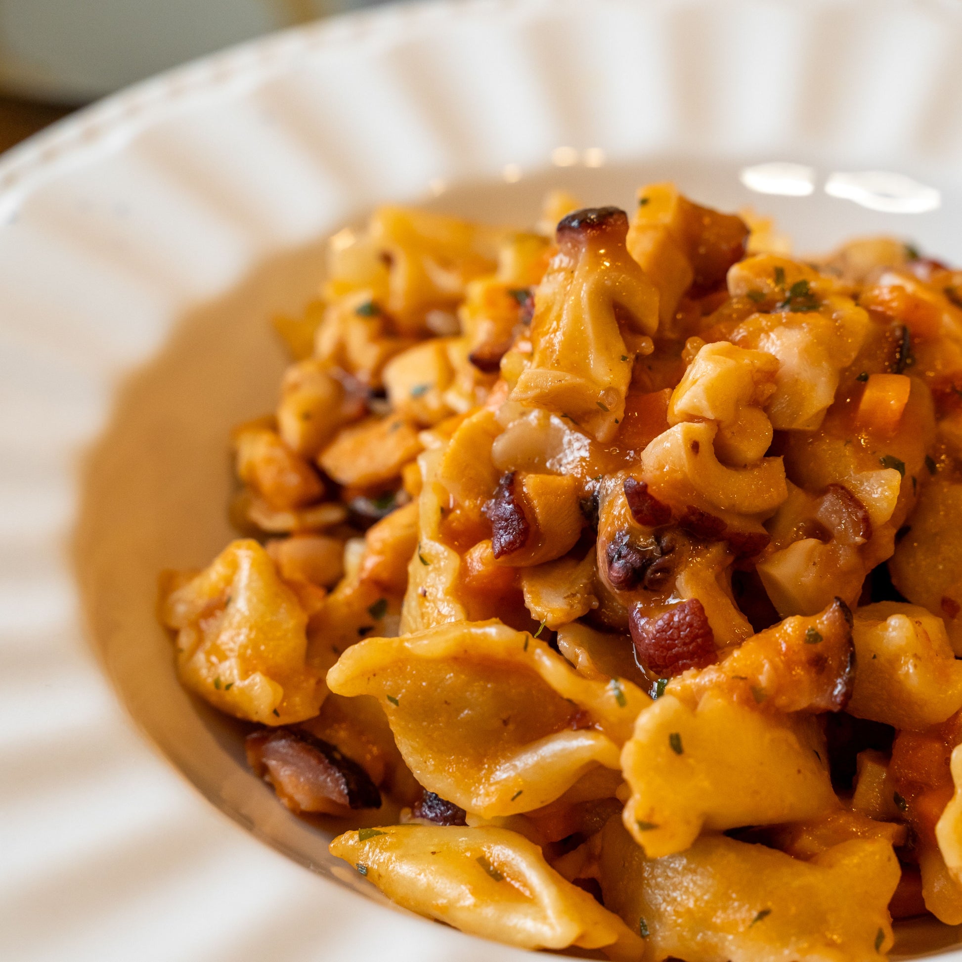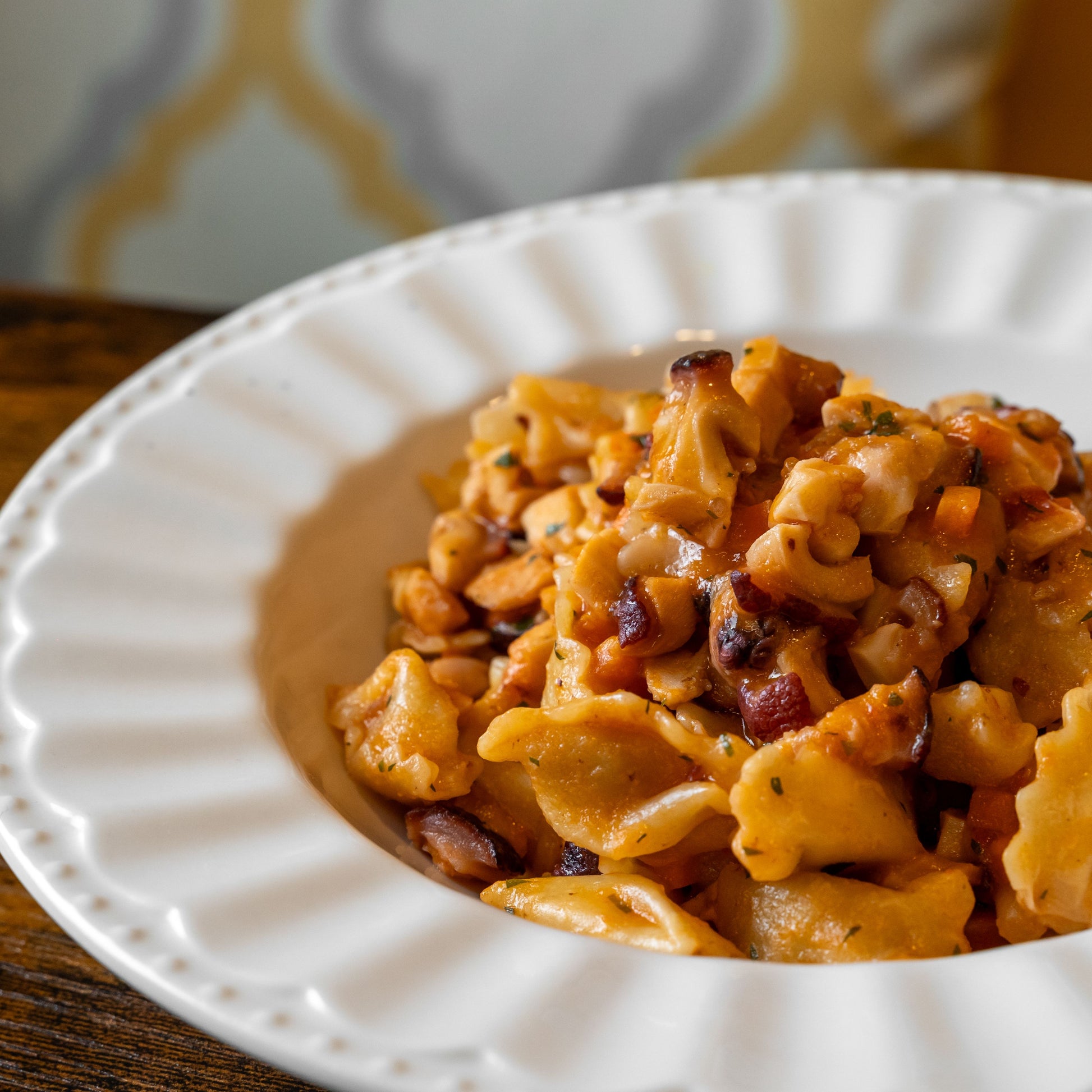 Befolgen Sie die Anweisungen des Küchenchefs, um die Pasta in nur wenigen Minuten zu kochen, die Soße zu regenerieren und ein Gericht zu servieren, das schmeckt, als käme es gerade aus der Restaurantküche.