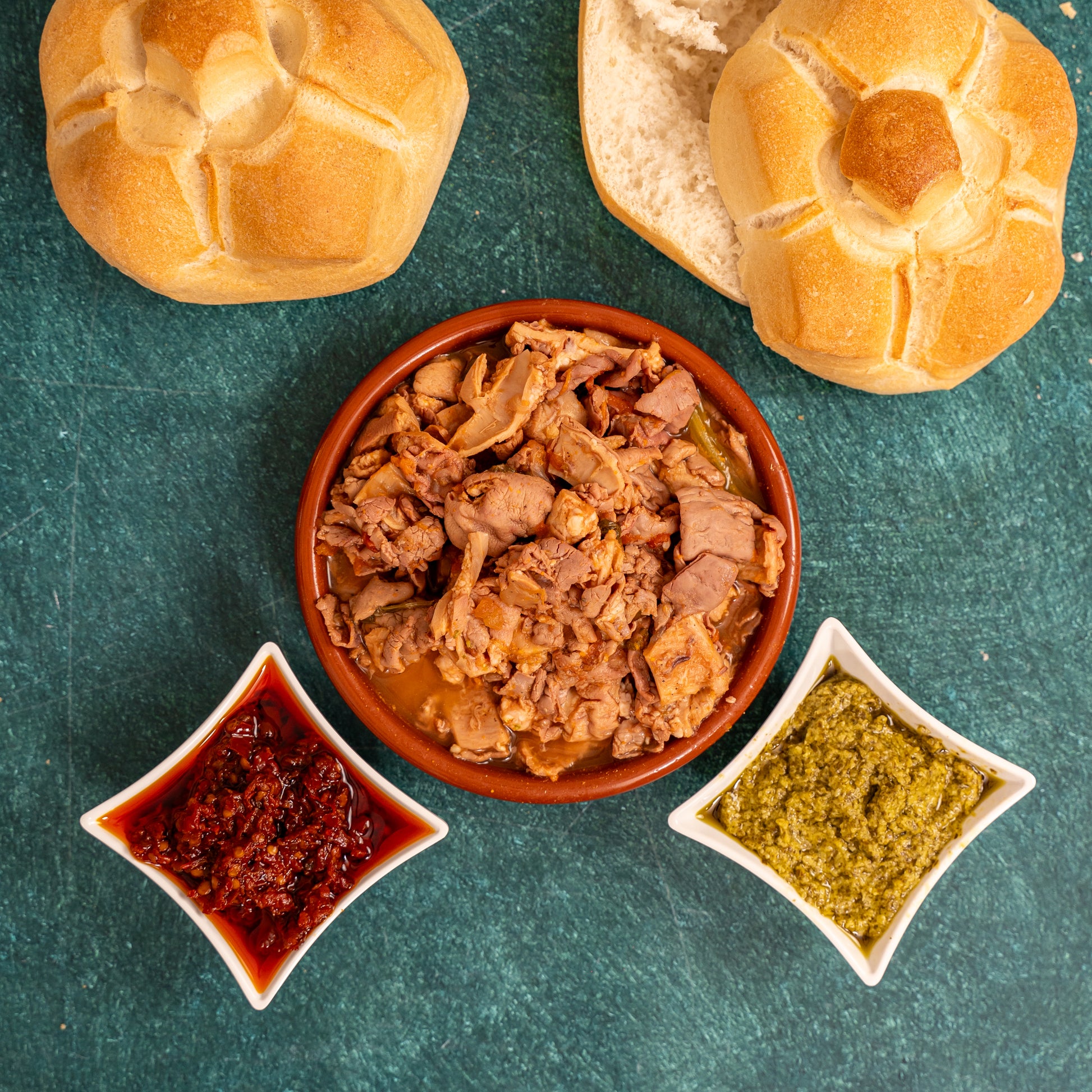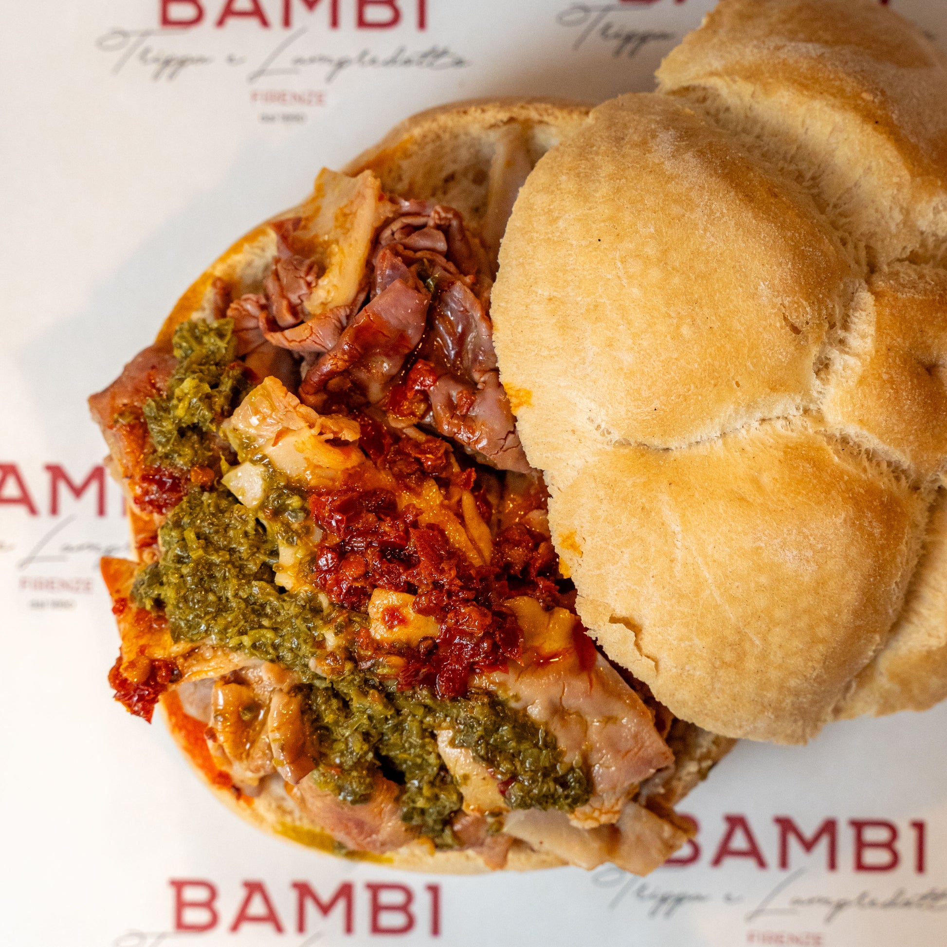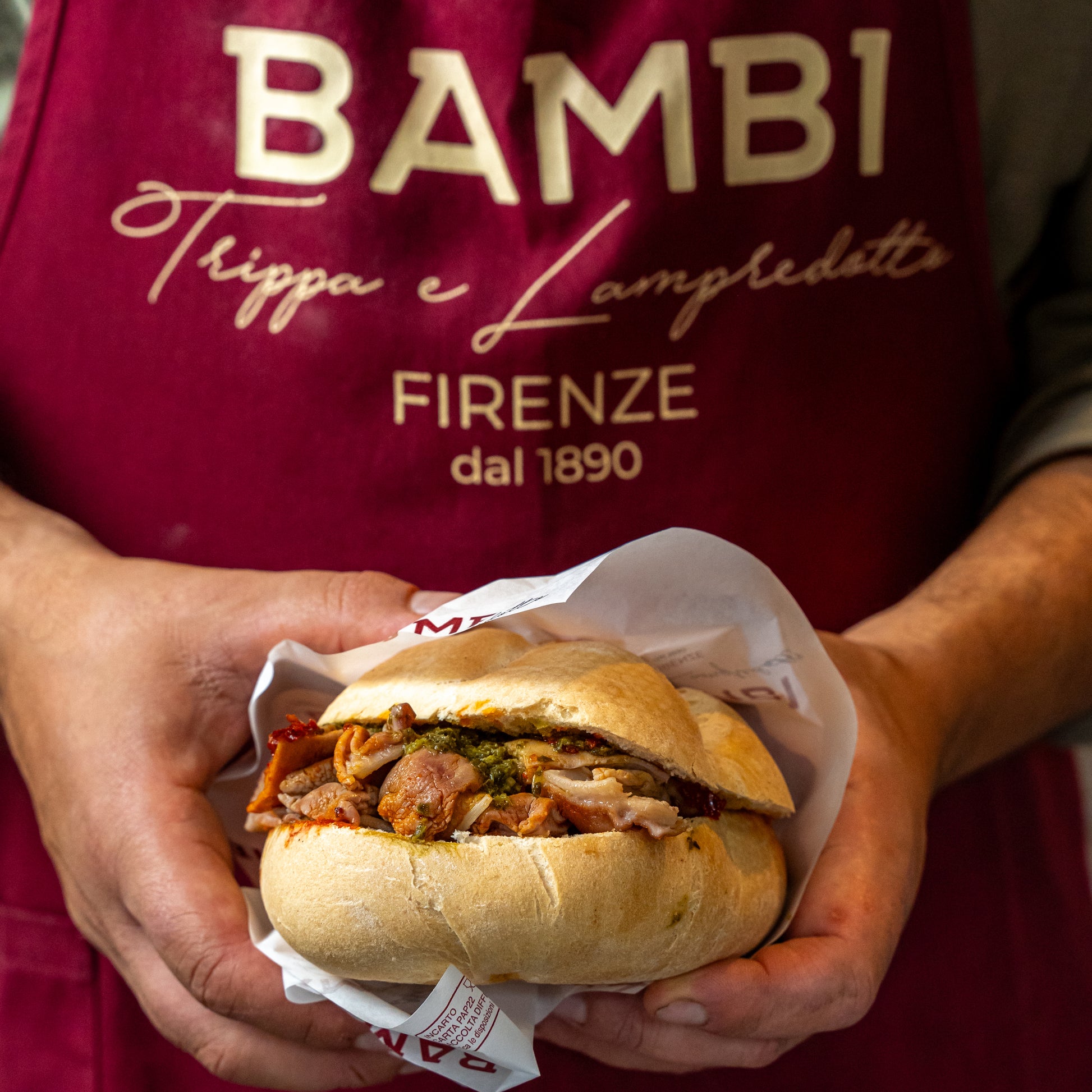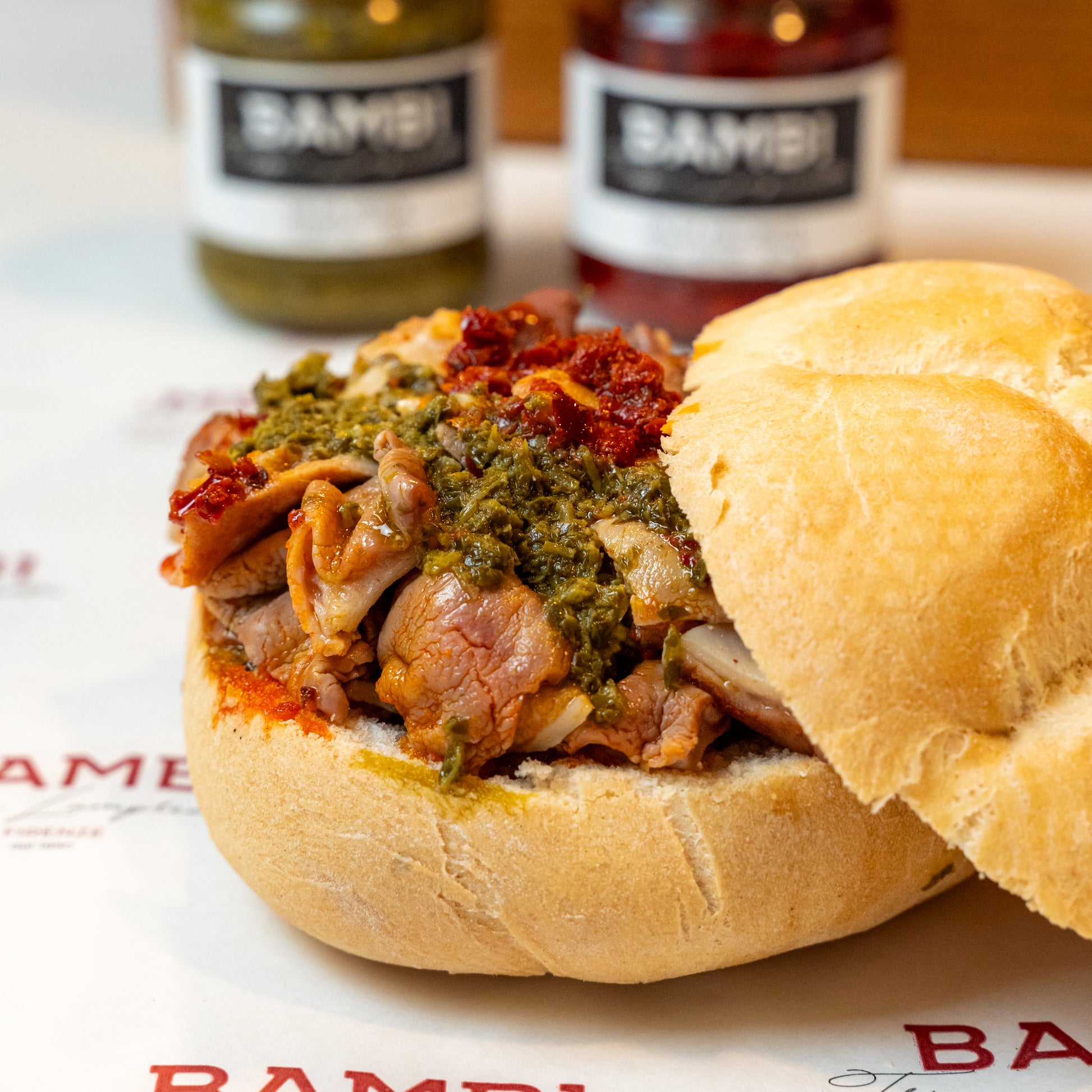 Im Paket finden Sie eineVerkostung für 2 Personendes authentischen undOriginal Florentiner Lampredotto, streng nach Tradition zubereitet und begleitet vonBambis Grüne Soßeund vonBambis scharfe Sauce.