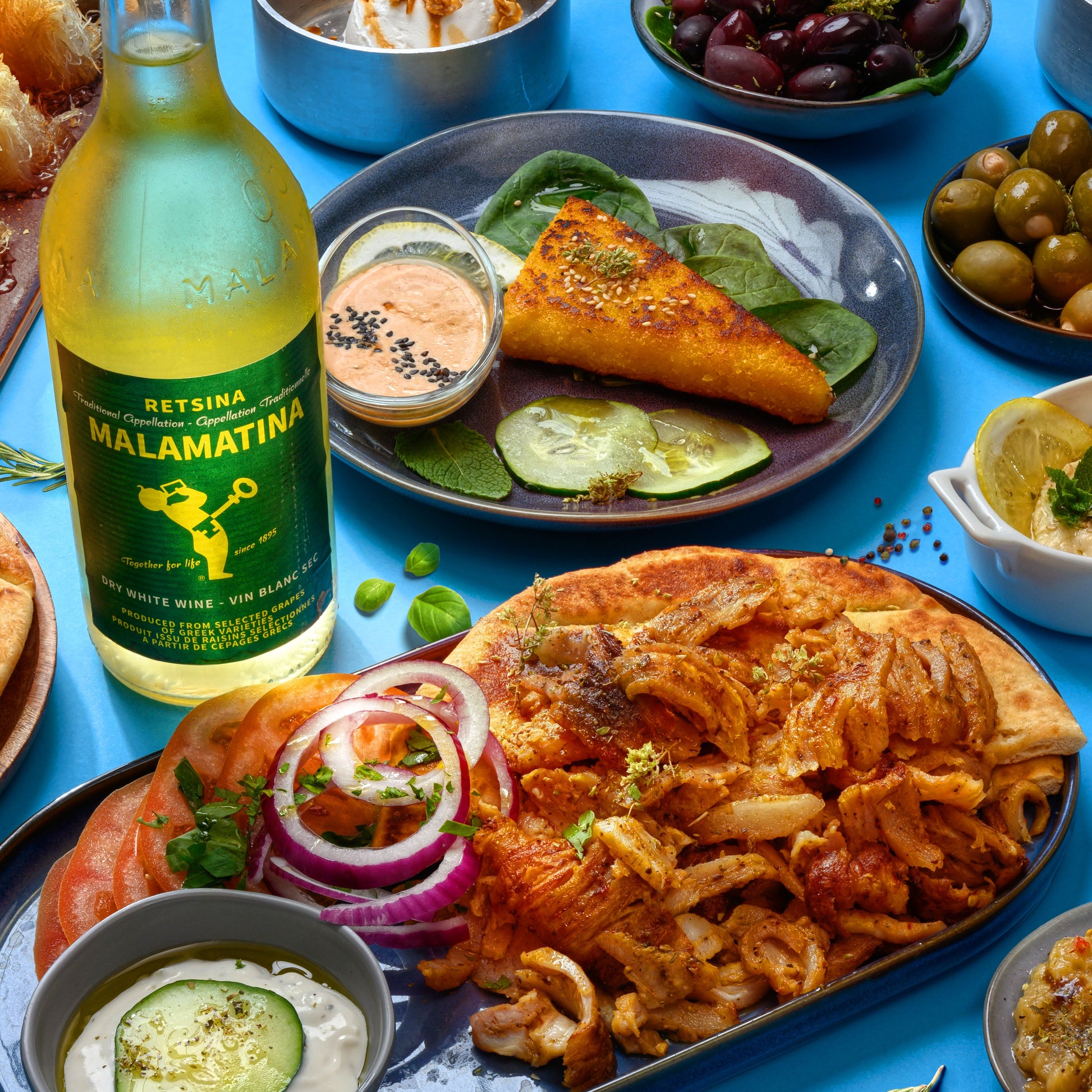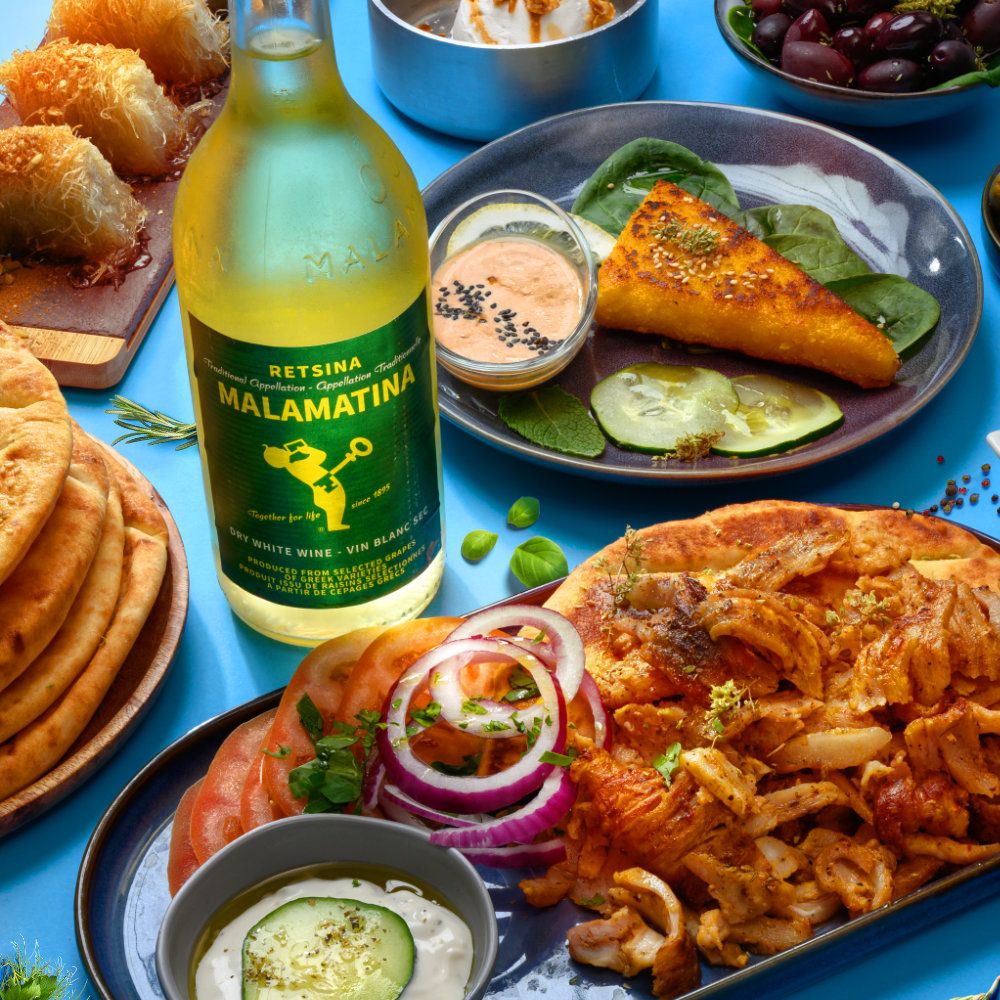 • Flasche Retzina-Weißwein (typisch griechisch)