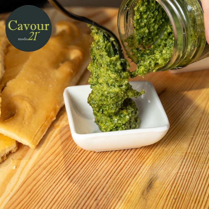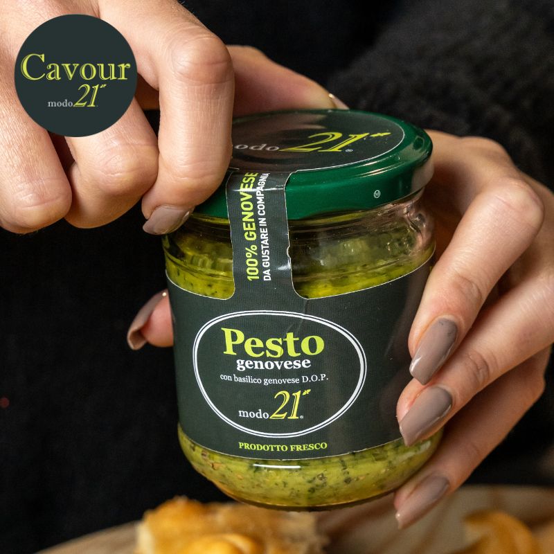 6 Gläser Pesto à 150 g mit Basilikum Genueser DOPEs geht um100 % frische und handwerkliche Produkte, direkt von den Köchen desRestaurant Cavour Modo 21.
