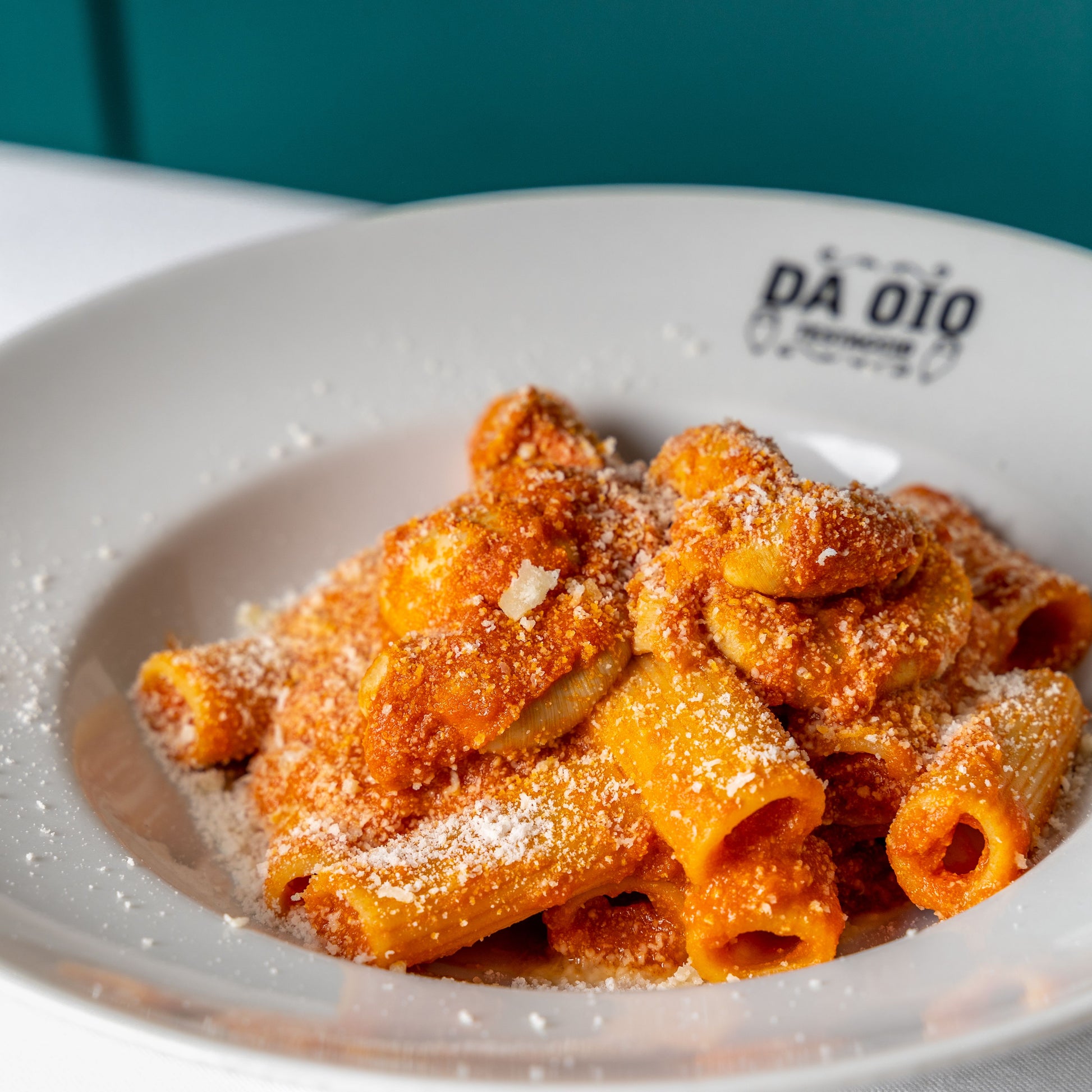 Befolgen Sie die Anweisungen des Küchenchefs zur Zubereitung seinesRigatoni mit Pajatadirekt zu Ihnen nach Hause!