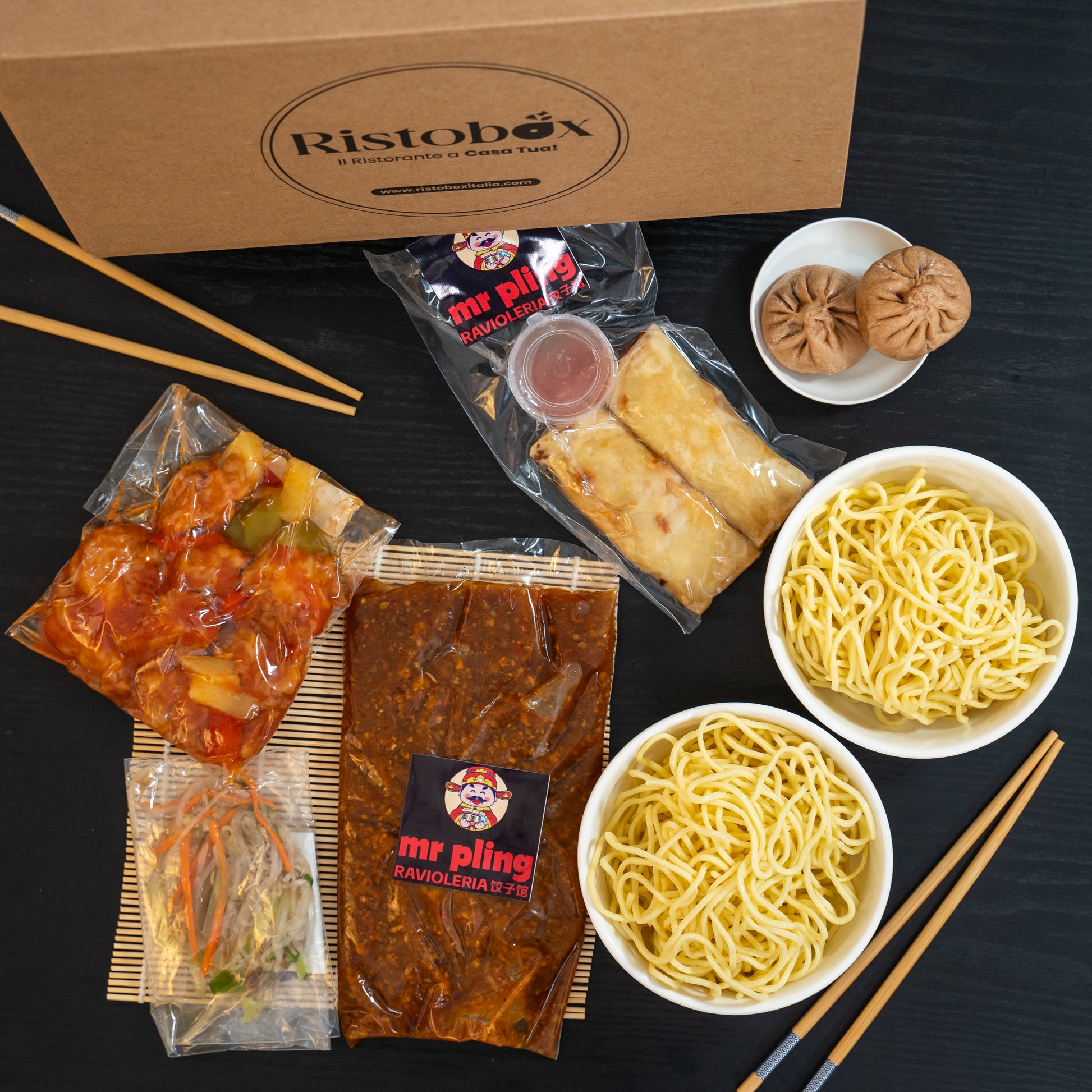 Eine reichhaltige Auswahl typisch chinesischer Küche mit 4 verschiedenen Gerichten, alle in Portionen für 2 Personen . In der Box finden Sie die berühmten Frühlingsrollen , Pekingnudeln und Hühnchen in süß-saurer Sauce . Zum Abschluss gibt es als Nachtisch köstliche Choco Bao , weiche, gedämpfte chinesische Brötchen gefüllt mit Haselnusscreme .