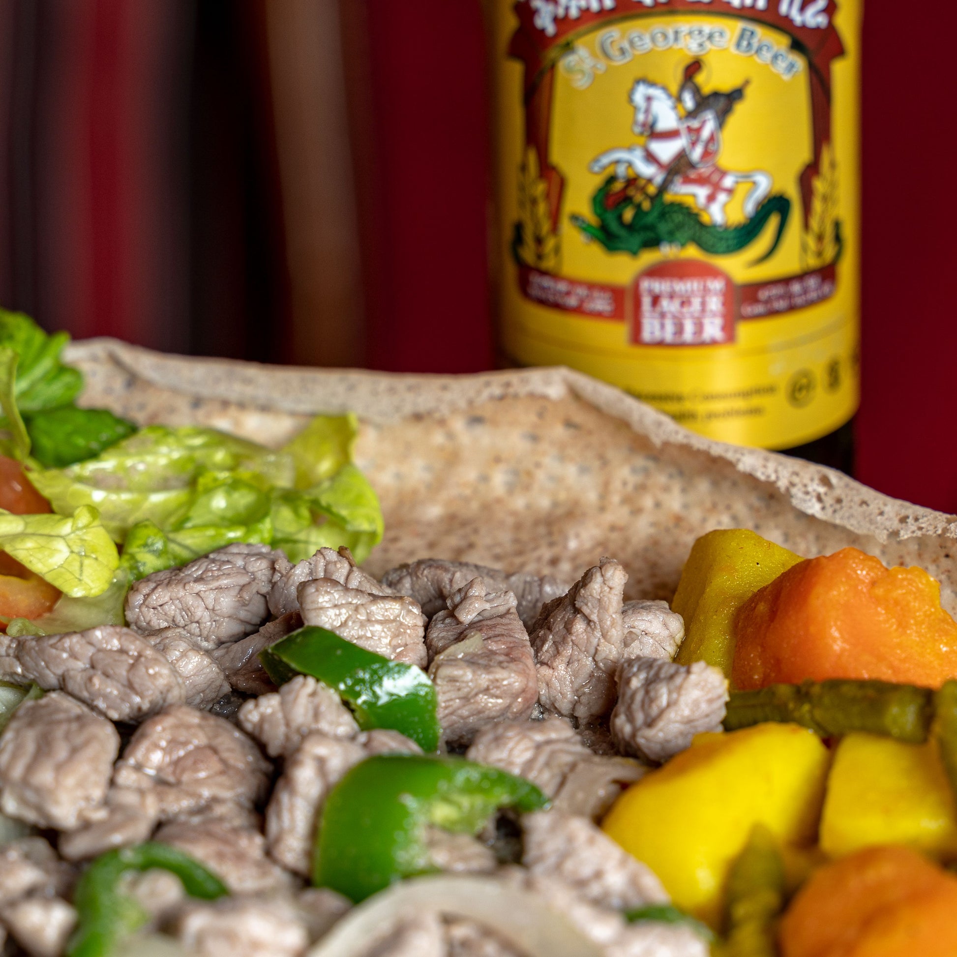 White Spriss ist ein typisches äthiopisches und eritreisches Gericht mit Rindfleisch , begleitet von zwei eritreischen Craft-Bieren ( 2 Portionen ). Eine Box des Africa Restaurants, dem ältesten Italiens. Erleben Sie einen einzigartigen Abend und entdecken Sie die authentischen Aromen dieser fernen Länder.