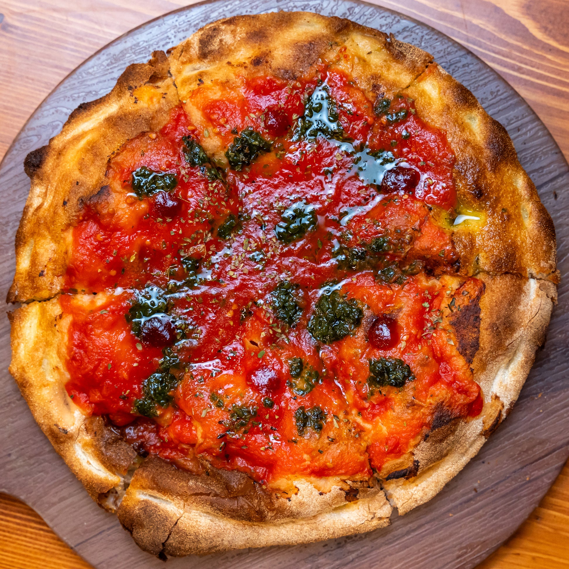 DortKnusprige Marinara-Sbagliat-Pizzaa ist eine Spezialität vonMeister Vitagliano, hergestellt mit ausgewählten Zutaten, die diesemPizzaeine ganz besondere Note von Süße.