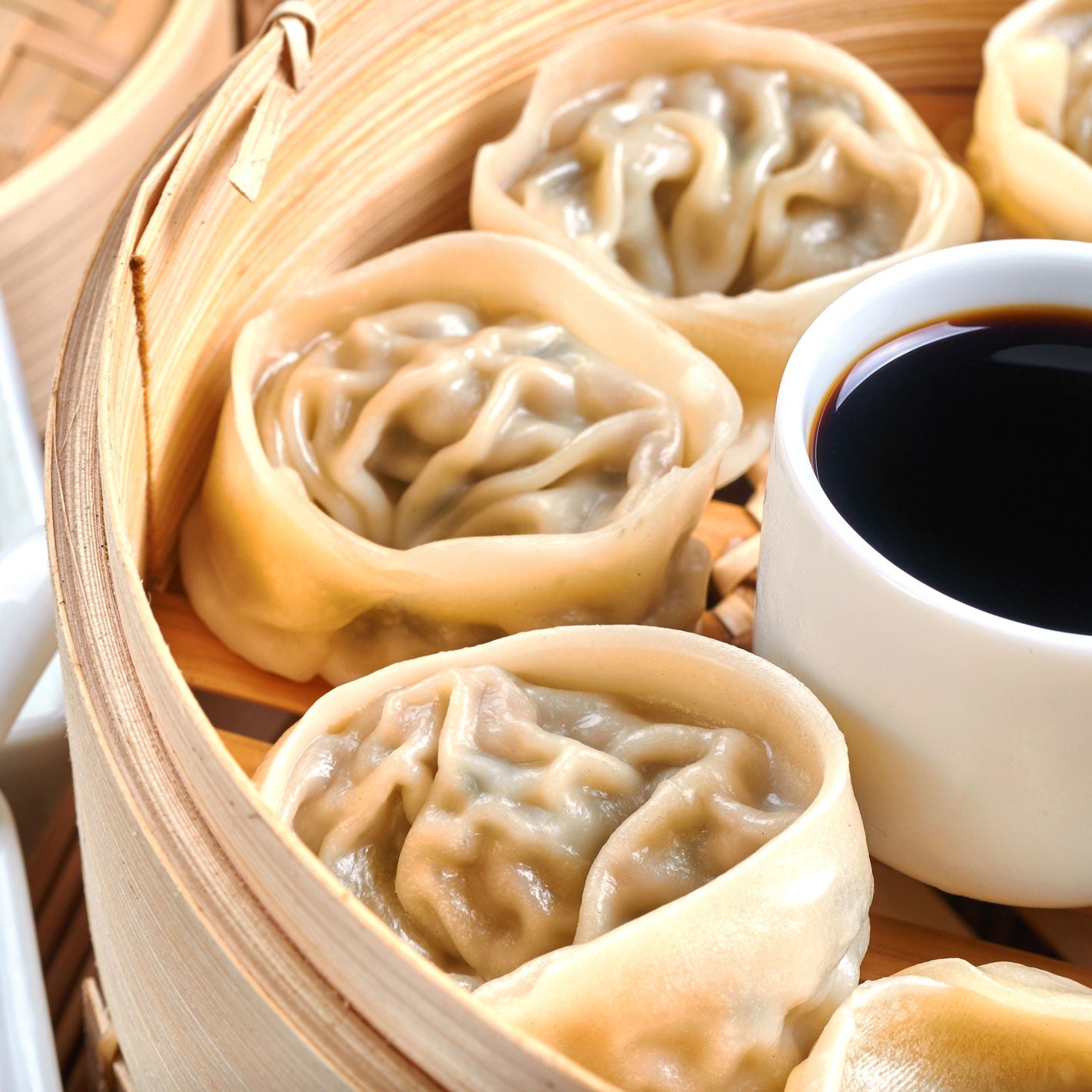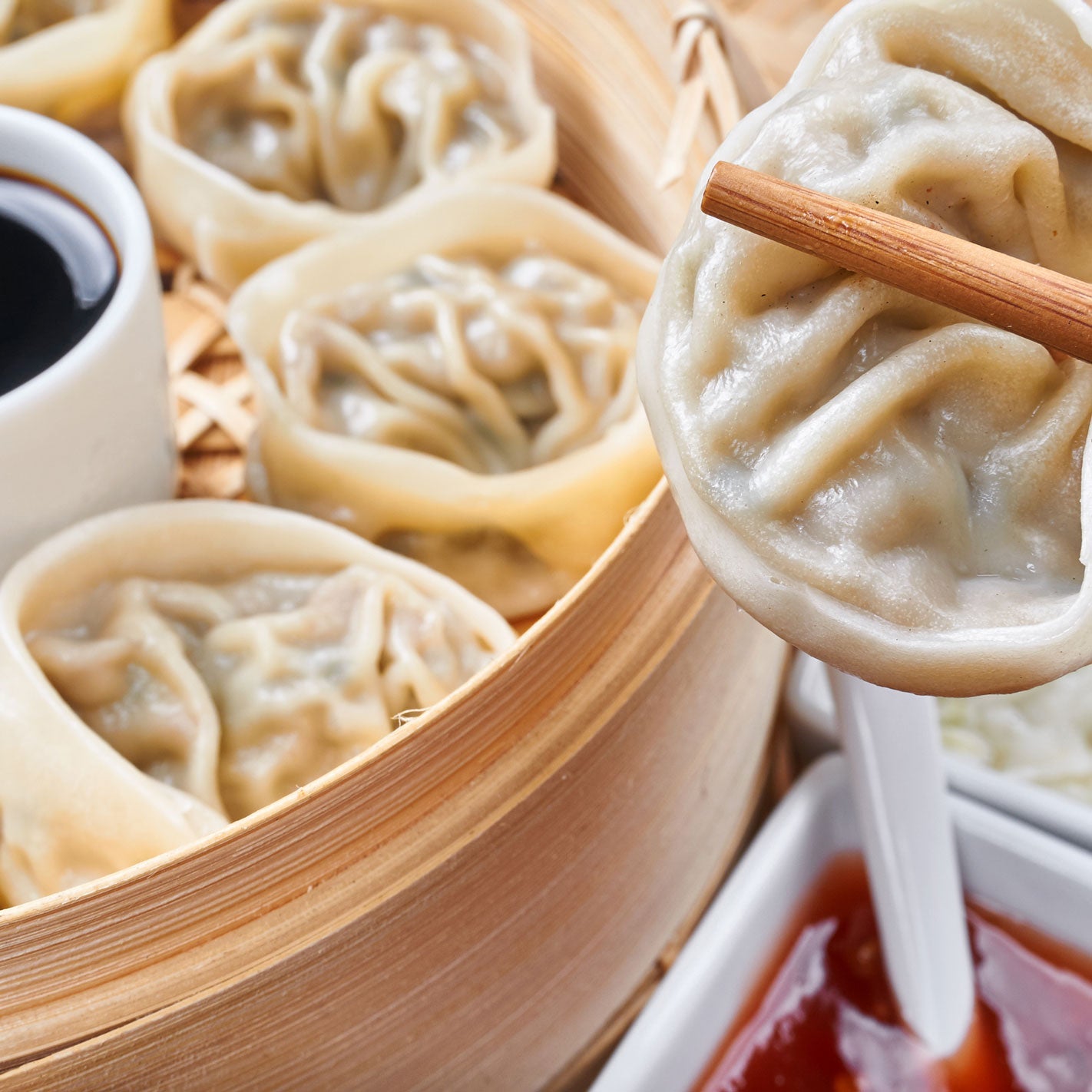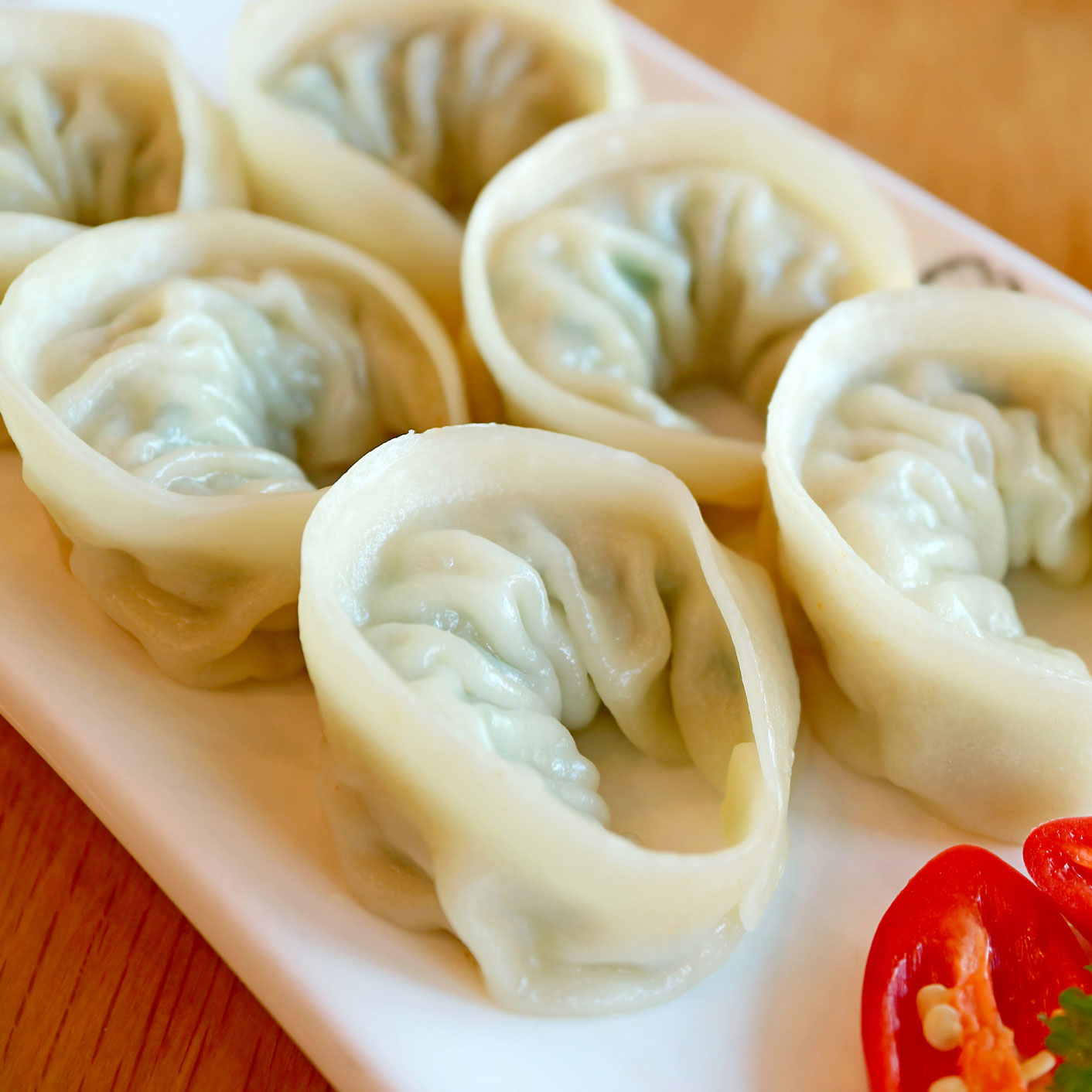 • Ravioli di manzo (mandu): farina di grano, carne di manzo, vermicelli di patate dolci, salsa di soia, olio di sesamo, polvere d’aglio, tofu, erba cipollina, miri, verza, zenzero
